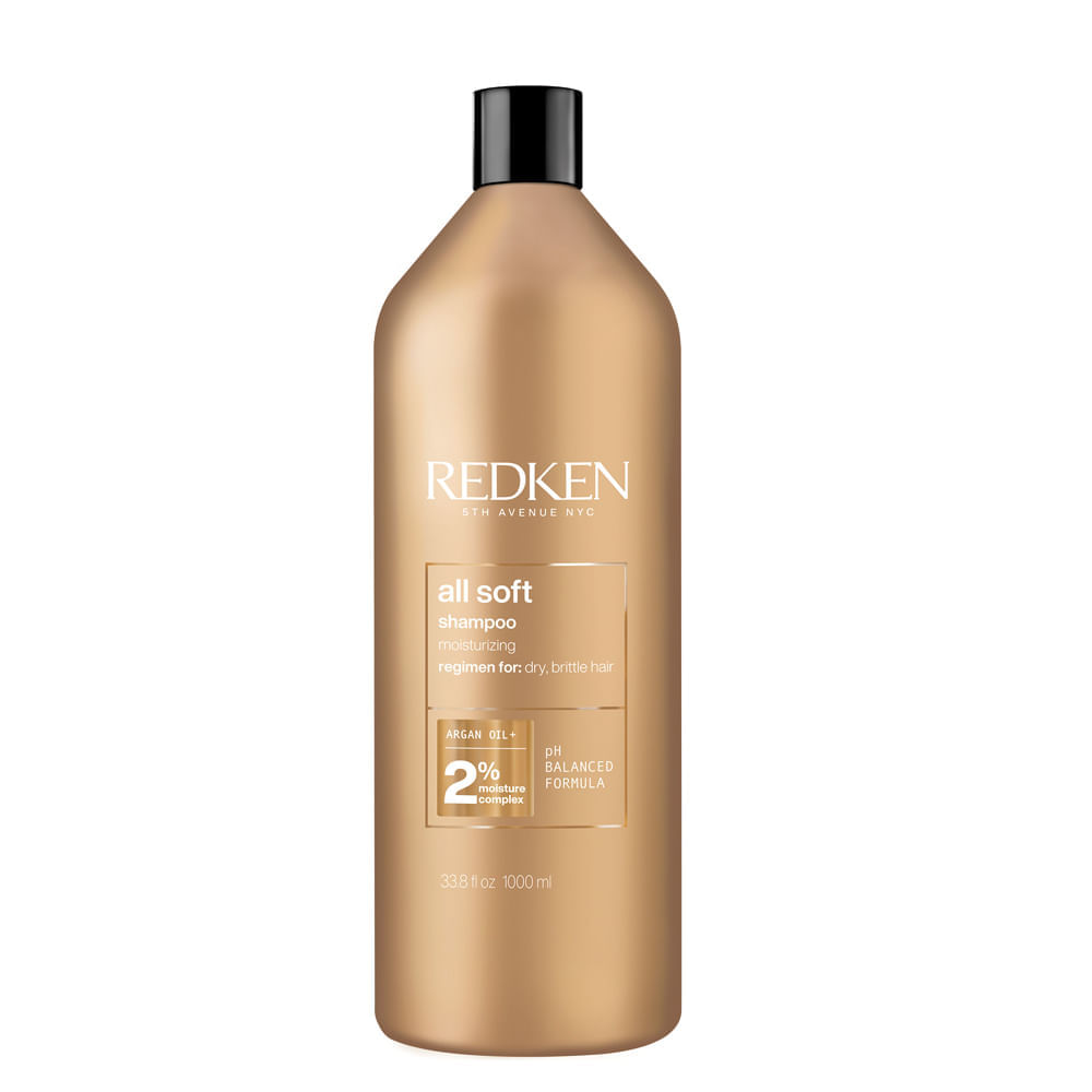 Shampoo Redken All Soft 1000ml – Hidratação Profunda, Maciez Extrema e Brilho IntensoShampoo indicado para cabelos secos, opacos e fragilizados, o Shampoo Redken All Soft com 1000ml limpa suavemente enquanto proporciona hidratação profunda, nutre a fibra capilar e devolve maciez, sedosidade e brilho intenso aos fios. Desenvolvido com tecnologia avançada para recuperar a saúde dos cabelos danificados, promove uma limpeza eficaz sem comprometer a umidade natural dos fios. A Linha All Soft da Redken é reconhecida por sua eficácia em restaurar cabelos ressecados e quebradiços, com fórmula que combina ativos inteligentes para tratar o cabelo de dentro para fora. O RCT Protein Complex, presente em toda a linha, atua em três zonas do cabelo (raiz, núcleo e pontas) oferecendo nutrição segmentada e reforçando a estrutura da fibra capilar. O produto é Cruelty Free, livre de parabenos e dermatologicamente testado, garantindo segurança e respeito ao couro cabeludo.Benefícios do ShampooHidratação profunda com ação imediata e duradoura nos fios.Redução visível do frizz em até 70%, com selamento da cutícula capilar.Reconstrução da fibra capilar, aumentando a resistência e diminuindo a quebra.Promove fios 15 vezes mais macios quando usado em conjunto com o óleo capilar Argan-6.Devolve brilho intenso e iluminação natural aos cabelos opacos.Fortalece a estrutura interna dos fios com ativos que penetram profundamente na fibra.Textura suave que facilita a espalhabilidade e garante espuma rica, ideal para limpeza eficaz.Ação/Resultado dos AtivosRCT Protein Complex: Atua em três zonas do cabelo (raiz, núcleo e pontas), fornecendo nutrição personalizada e restaurando a integridade da fibra capilar.Interlock Protein Network (IPN): Reconstrói a rede proteica da superfície do cabelo e fortalece seu interior, aumentando a resistência à quebra.Moisture Complex: Sistema inteligente de entrega de umectação que restaura a elasticidade e a maleabilidade dos fios, combatendo o ressecamento.Óleo de Argan: Penetra profundamente na fibra capilar, intensificando a maciez, selando a cutícula e proporcionando brilho duradouro.Proteína de Soja: Ajuda a selar a umidade dentro dos fios, adicionando estrutura e fortalecendo a fibra capilar de forma gradual e sustentável.Como Usar o Shampoo Redken All Soft Umedeça completamente os cabelos com água morna para abrir as cutículas capilares. Aplique uma quantidade moderada do shampoo sobre o couro cabeludo, massageando com movimentos circulares. Espalhe o produto pelas pontas, garantindo ação uniforme em toda a extensão dos fios. Deixe agir por 2 minutos para que os ativos penetrem na fibra capilar. Enxágue abundantemente até remoção total do produto, repetindo a aplicação se necessário.Itens Inclusos: 1 Shampoo Redken All Soft 1000 ml;Observações: Imagem Meramente Ilustrativa.;Gênero: Unissex;Linha: All Soft;Categoria: Ver Todos;Categoria: Shampoos;Tipo de Cabelo: Ver Todos;Tipo de Cabelo: Secos ou Ressecados;Similares - Thumb de Conteúdo: 1000 ml;