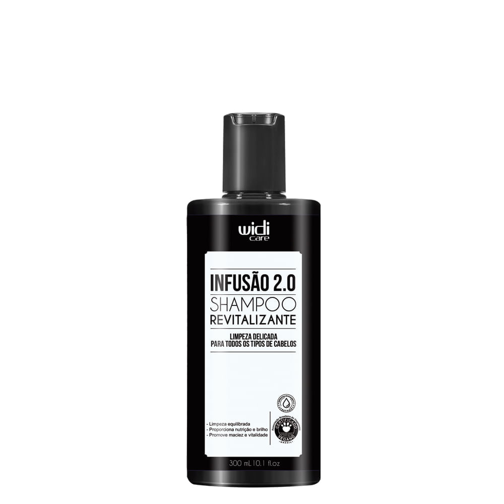 Shampoo Revitalizante Widi Care Infusão 2.0 300ml – Hidratação Profunda, Alinhamento dos Fios e MaciezShampoo indicado para cabelos lisos, o Shampoo Revitalizante Widi Care Infusão 2.0 com 300ml limpa com suavidade, promove hidratação prolongada e proporciona alinhamento dos fios, mantendo a maciez e o brilho natural. Desenvolvido com fórmula balanceada, age sem comprometer a hidratação natural da fibra capilar, ideal para uso frequente. A Linha Infusão 2.0 da Widi Care foi criada para tratar e revitalizar cabelos lisos, com foco em manter a disciplina e a saúde dos fios. A Tecnologia Infusão 2.0 combina ativos hidratantes e nutrientes que penetram profundamente na cutícula capilar, restaurando a umidade perdida e protegendo contra agressões diárias. O produto é livre de sulfatos agressivos, parabenos, silicones e petrolatos, além de ser vegano e Cruelty Free, garantindo um cuidado ético e eficaz para o couro cabeludo e os fios.Benefícios do Shampoo Hidratação profunda que dura até 72 horas após a aplicação.Alinhamento suave dos fios, reduzindo o frizz em até 70%.Fortalecimento da fibra capilar, com 3x mais resistência à quebra.Brilho intenso com toque sedoso, graças à selagem da cutícula capilar.Equilíbrio do pH do couro cabeludo, mantendo a barreira natural protegida.Facilidade de escovação e desembaraço imediato durante o banho.Nutrição com ativos naturais que restauram a maciez e a elasticidade.Ação/Resultado dos AtivosQueratina hidrolisada: Penetra na fibra capilar, repõe proteínas essenciais e reduz a porosidade dos fios.Óleo de Coco e Linhaça: Oferece nutrição profunda, selando a cutícula e reduzindo o frizz.Complexo Hidra-Defesa: Protege os fios contra danos ambientais e térmicos, mantendo a hidratação por mais tempo.Como Usar o Shampoo Revitalizante Widi Care Infusão 2.0 Molhe bem os cabelos com água morna para abrir as cutículas. Aplique uma quantidade moderada do shampoo com movimentos suaves no couro cabeludo. Massageie da raiz às pontas, permitindo que os ativos penetrem nos fios. Deixe agir por 2 minutos para potencializar o resultado hidratante. Enxágue completamente e repita o processo se necessário.Tipo de Produto: Shampoo;Certificações: Cruelty Free;Itens Inclusos: 1 Shampoo Revitalizante Widi Care Infusão 2.0 300 ml.;Observações: Imagem Meramente Ilustrativa.;Gênero: Unissex;Origem: Nacional;Composição: Aqua – Disodium Laureth Sulfosuccinate – Cocamidopropyl Betaine – Lauryl Glucoside – Coco Glucoside (and) Glyceryl Oleate – Propylene Glycol – Poliquaternium-7 – Guar Hydroxypropyltrimonium Chloride – Disodium Cocoyl Glutamate – Punica Granatum Bark Extract – Lycium Barbarum Fruit Extract – Phenoxyethanol (and) Caprylyl Glycol – Disodium EDTA – Citric Acid – Fragrance (Parfum), Linalool / Geraniol / Citronellol / Coumarin / Citral / Methyl 2-Octynoate (Methyl Heptine Carbonate).;Sugestão de Uso: Aplique Nos Cabelos Úmidos, Massageando Suavemente, E Enxágue Bem. Para Melhores Resultados, Repita A Operação. Após O Enxágue, Retire O Excesso De Água Dos Fios E Prossiga Com O Tratamento Usual.;Embalagem: Frasco;Utilização: Regular;Categoria: Shampoos;Tipo de Cabelo: Normais ou Todos os Tipos;Similares - Thumb de Conteúdo: 300 ml;