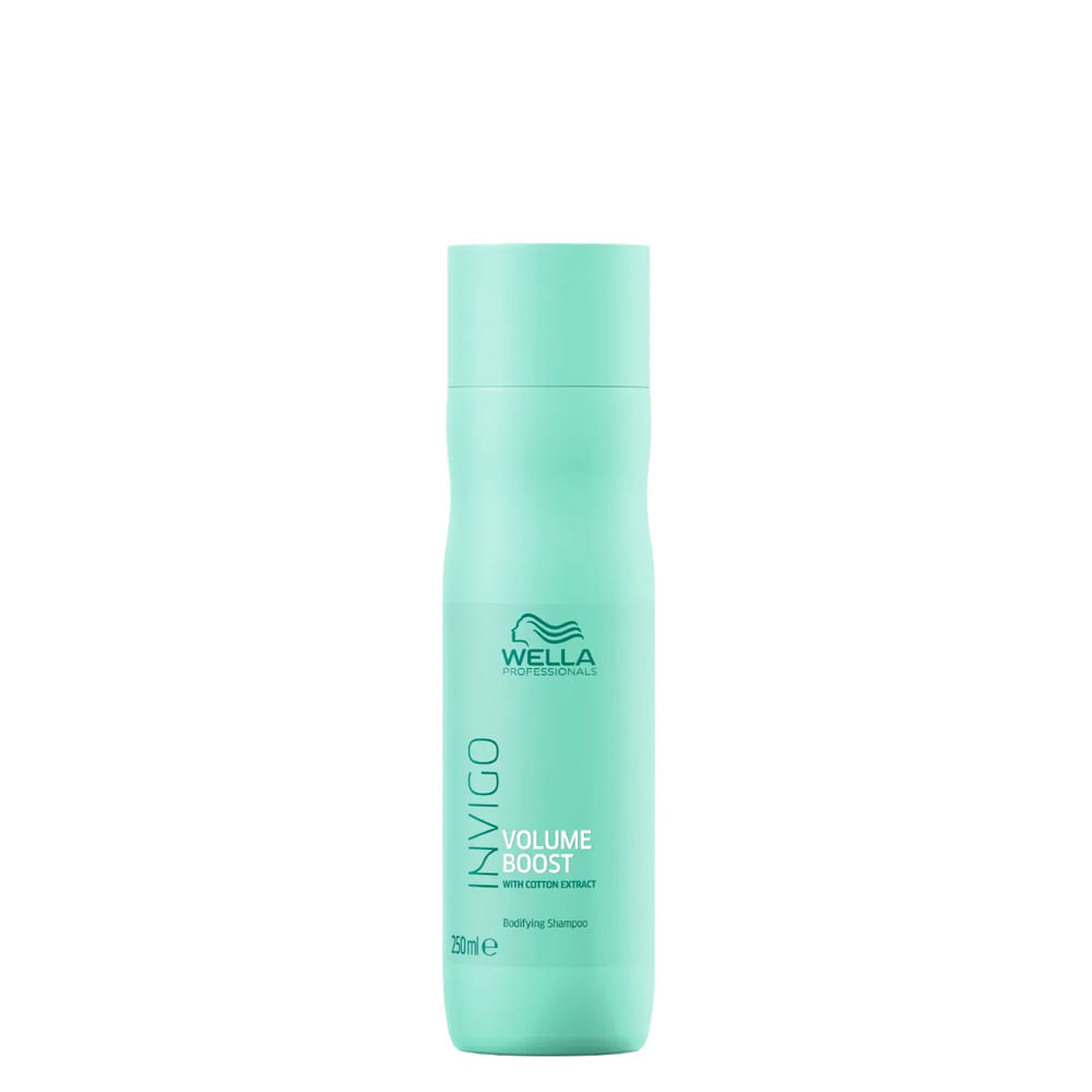 Shampoo Wella Professionals Invigo Volume Boost 250ml – Volume Leve, Maciez e Brilho IntensoShampoo indicado para cabelos finos ou sem volume, o Wella Professionals Invigo Volume Boost com 250ml proporciona volume leve e duradouro, além de limpar suavemente os fios sem pesar, garantindo movimento flexível e natural. A fragrância floral verde fresca confere um toque irresistível de frescor aos cabelos.A Linha Invigo Volume Boost é desenvolvida para transformar a estrutura fina dos fios, oferecendo resultados profissionais com tecnologia avançada. A Volume Boost-Blend associada aos polímeros Bodifying Spring Force envolve a fibra capilar, selando a cutícula para criar volume resistente que mantém a integridade dos fios durante a escovação. O produto é Cruelty Free e livre de sulfatos agressivos, ideal para uma rotina leve e eficaz para cabelos com pouca densidade.Benefícios do ShampooProporciona volume visível desde a primeira lavagem, ideal para cabelos finos e sem sustentação.Redução do frizz e aumento significativo de brilho intenso graças à tecnologia de fortalecimento da fibra capilar.Estabiliza a estrutura dos fios, prevenindo as quebras durante a escovação e modelagem térmica.Maciez prolongada com Extrato de Algodão, mantendo o equilíbrio hídrico sem comprometer o volume.Fórmula leve que não sobrecarrega os fios, permitindo modelagem natural com movimento fluido.Proteção da cutícula capilar contra danos ambientais e mecânicos durante o dia a dia.Limpeza equilibrada que remove impurezas sem agredir a hidratação natural do couro cabeludo.Ação/Resultado dos AtivosVolume Boost-Blend: Tecnologia exclusiva que envolve a fibra capilar, criando uma estrutura leve capaz de sustentar volume duradouro sem ressecar os fios.Polímeros Bodifying Spring Force: Formam uma rede flexível nos fios, garantindo resistência durante a escovação e mantendo o volume mesmo em alta umidade.Extrato de Algodão: Age como umectante natural, repõe lipídios essenciais e estabiliza a umidade interna da cutícula capilar.Como Usar o Shampoo Wella Professionals Invigo Volume Boost Molhe bem os cabelos com água morna. Aplique uma quantidade moderada do shampoo, massageando suavemente o couro cabeludo e alongando até as pontas. Deixe agir por 1-2 minutos para ativação dos polímeros na fibra capilar. Enxágue abundantemente até total remoção do produto. Para resultados máximos, complete a rotina com a Máscara e o Condicionador da Linha Invigo Volume Boost.Itens Inclusos: 1 Shampoo Wella Professionals Invigo Volume Boost;Observações: Imagem Meramente Ilustrativa.;Gênero: Unissex;Outlet: Não;Linha: Invigo Volume Boost;Categoria: Ver Todos;Categoria: Shampoos;Tipo de Cabelo: Ver Todos;Tipo de Cabelo: Finos e Sem volume ou Com Queda;Similares - Thumb de Conteúdo: 250 ml;