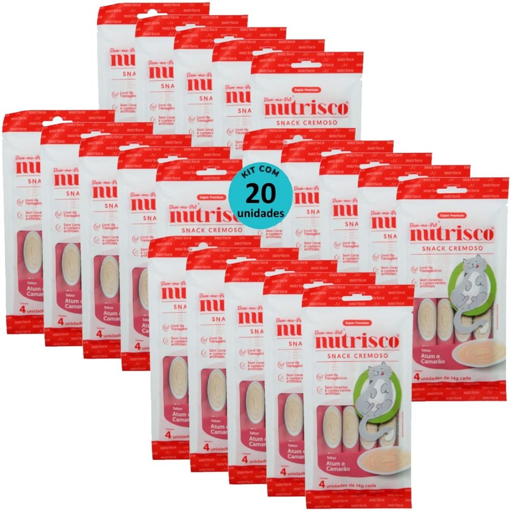 SNACK CREMOSO NUTRISCO GATOS 14G ATUM E CAMARÃO COM 4 UN - KIT COM 20
