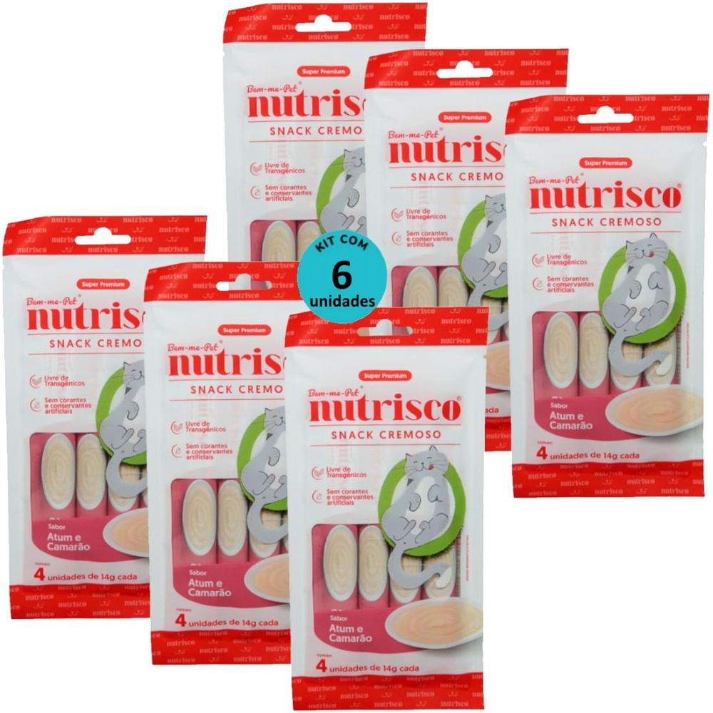 SNACK CREMOSO NUTRISCO GATOS 14G ATUM E CAMARÃO COM 4 UN - KIT COM 6