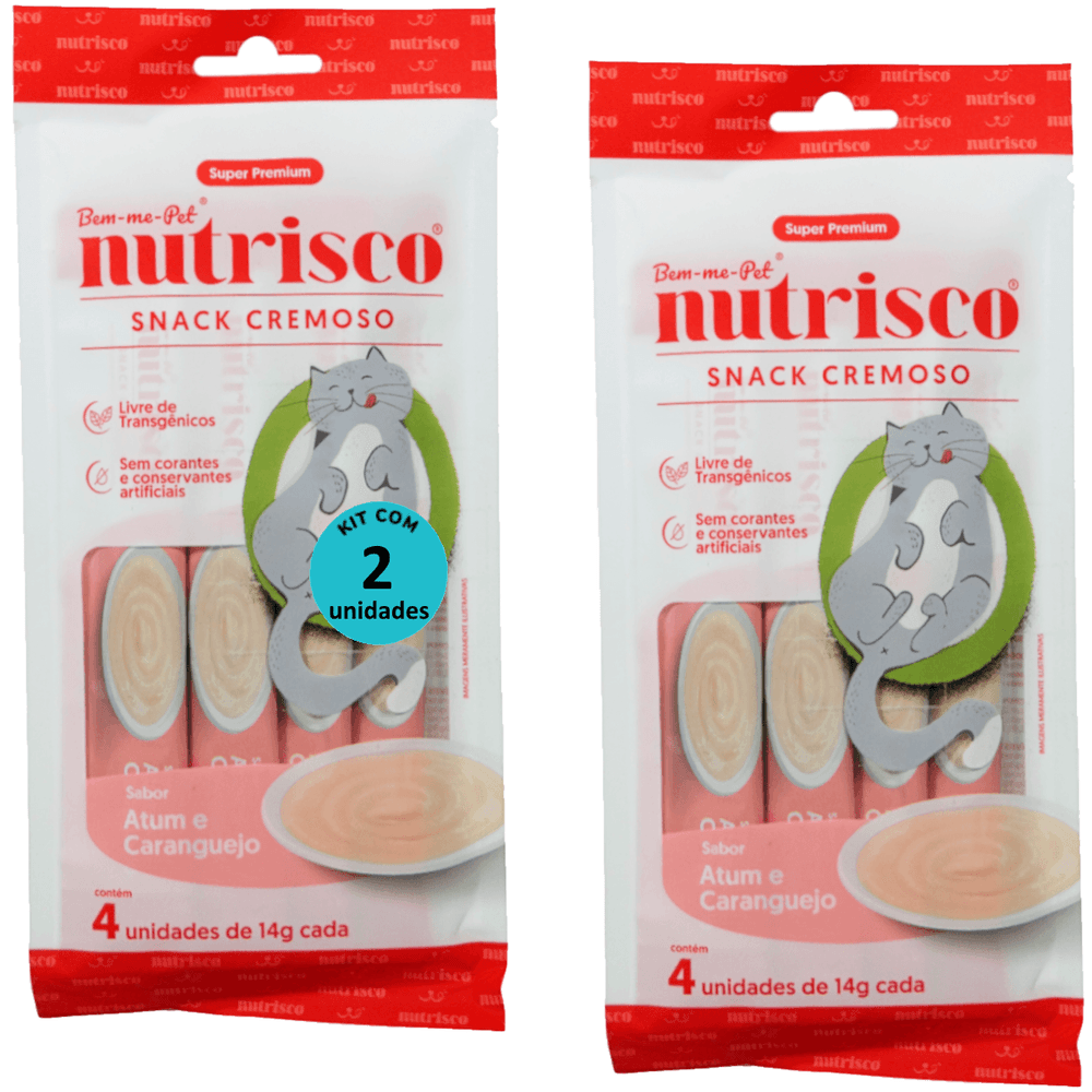 SNACK CREMOSO NUTRISCO GATOS 14G ATUM E CARANGUEJO COM 4 UN - KIT COM 2