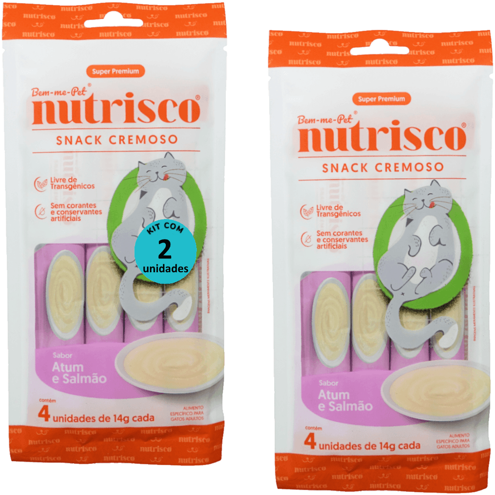 SNACK CREMOSO NUTRISCO GATOS ADULTOS 14G ATUM E SALMÃO COM 4 UN - KIT COM 2