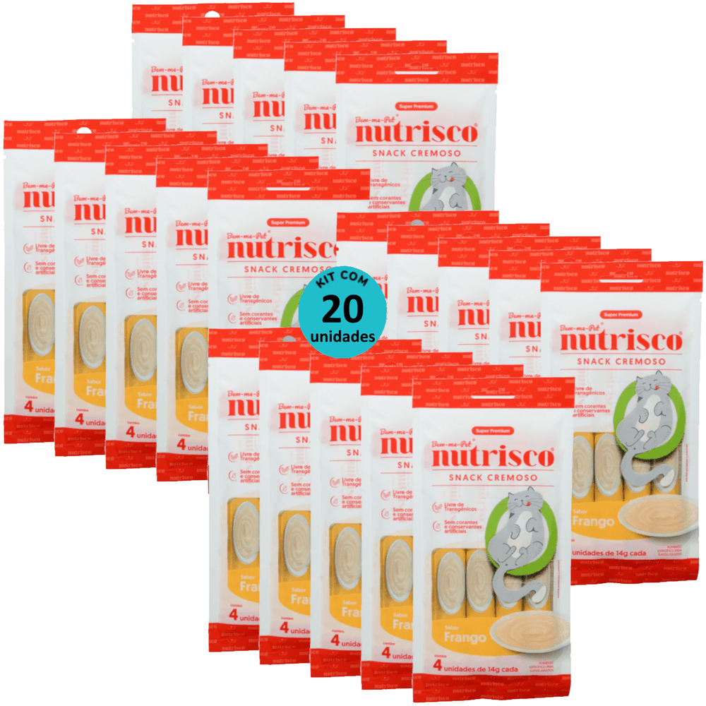 SNACK CREMOSO NUTRISCO GATOS ADULTOS 14G FRANGO COM 4 UN - KIT COM 20