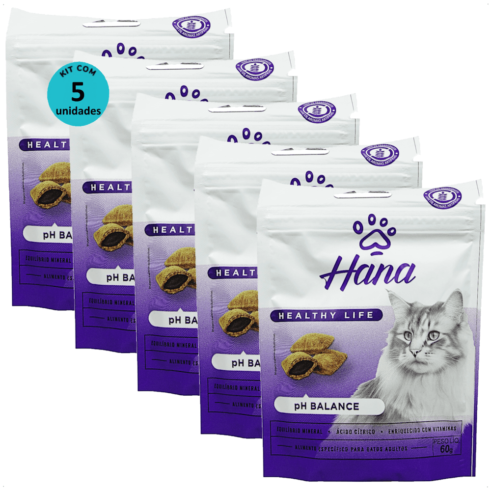 SNACK HANA HEALTHY LIFE PH BALANCE PARA GATOS ADULTOS 60G KIT COM 5