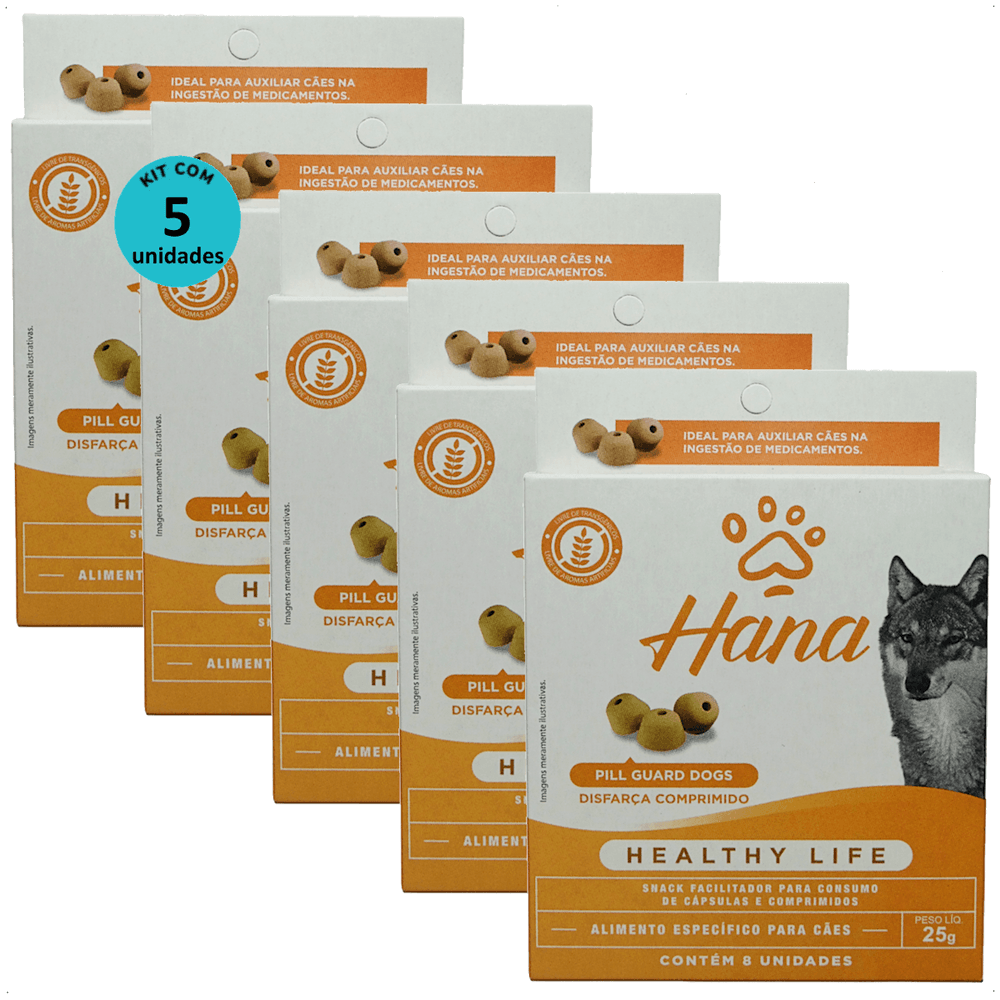 SNACK HANA HEALTHY LIFE PILL GUARD DISFARÇA COMPRIMIDOS 25G PARA CÃES KIT COM 5