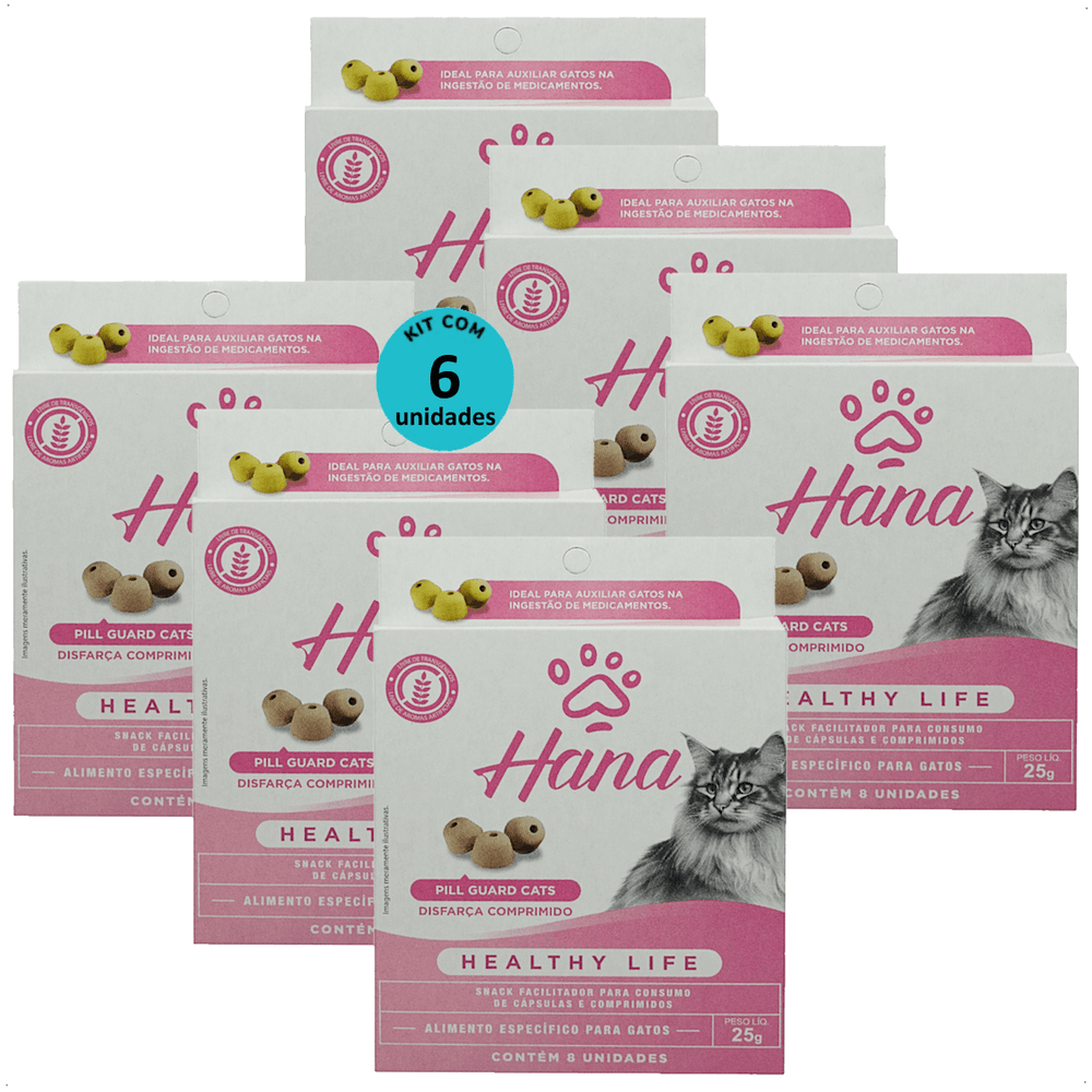SNACK HANA HEALTHY LIFE PILL GUARD DISFARÇA COMPRIMIDOS 25G PARA GATOS KIT COM 6