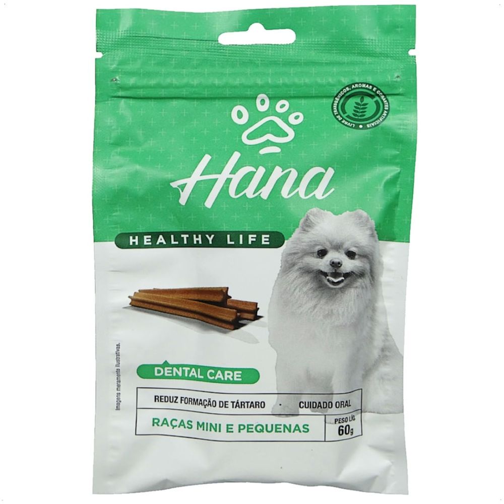SNACK HANA LIFE DENTAL CARE CÃES ADULTOS RAÇAS MINI E PEQUENAS 60G
