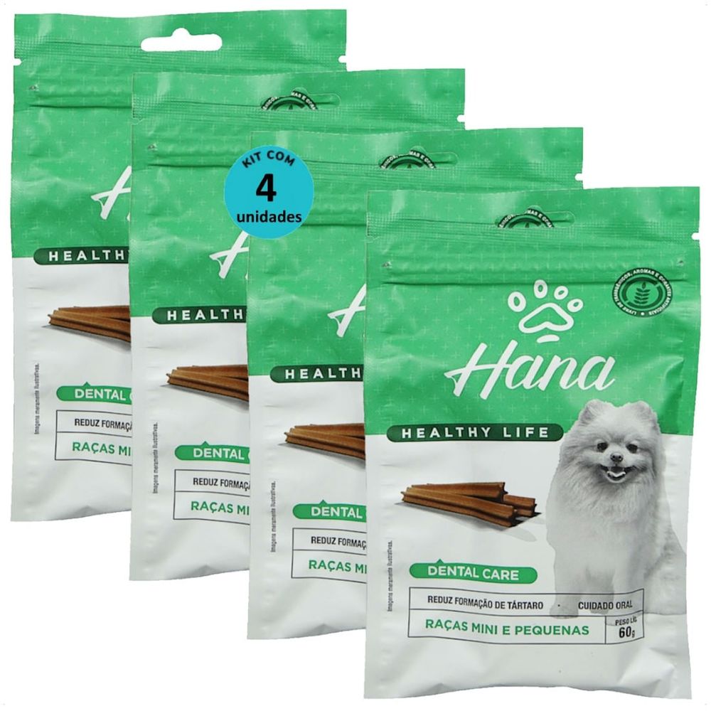 SNACK HANA LIFE DENTAL CARE CÃES ADULTOS RAÇAS MINI E PEQUENAS 60G KIT COM 4