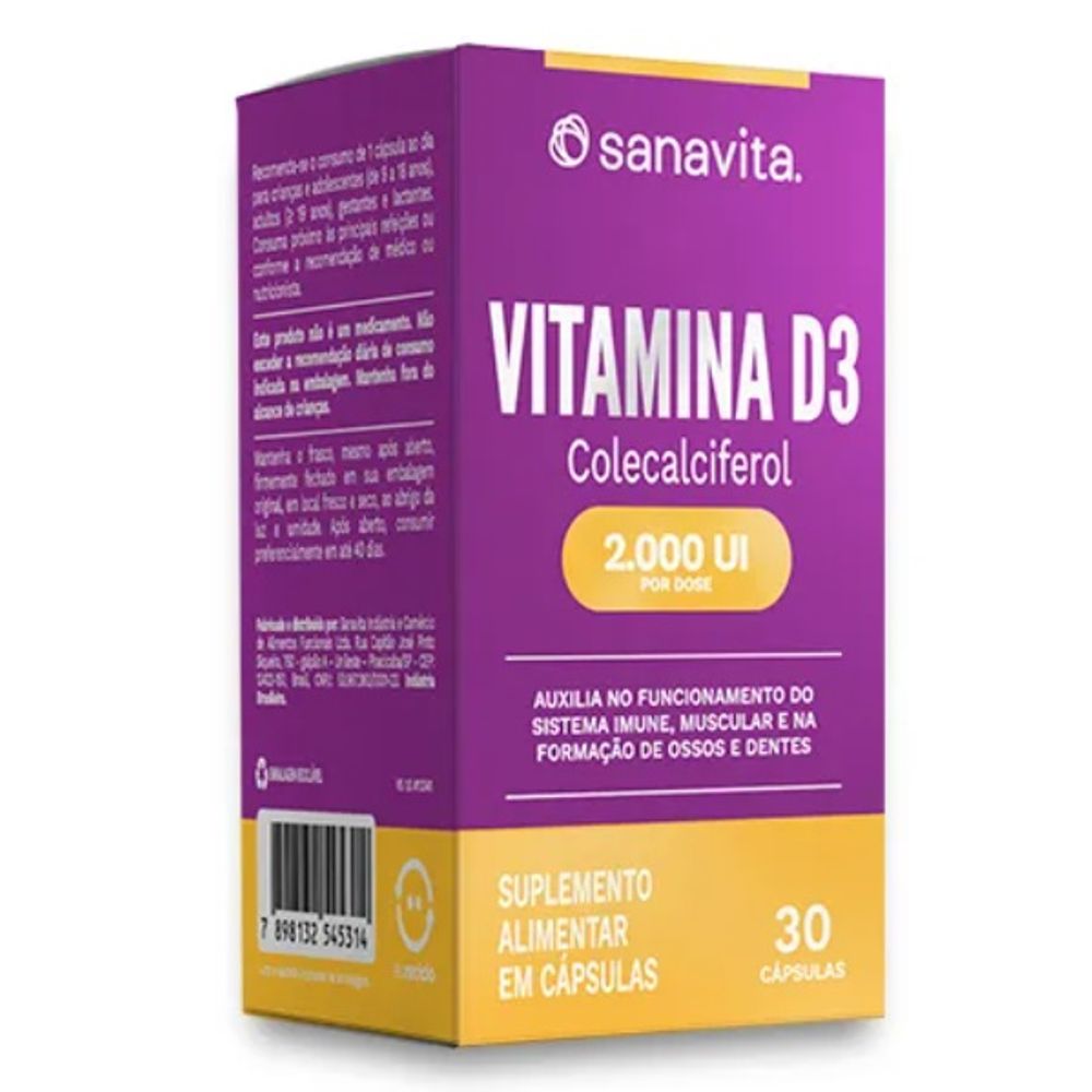 A Vitamina D3 da Sanavita oferece em uma única cápsula, 2.000 UI de vitamina D (50µg) na forma de colecalciferol, para complementar a alimentação diária ou suprir a deficiência deste importante nutriente, que atua no organismo mantendo os níveis adequados de cálcio, favorecendo a formação de ossos e dentes, auxiliando no funcionamento adequado dos músculos e do sistema imune, além de contribuir para inúmeros outros processos fisiológicos que mantém o corpo equilibrado e bem nutrido.