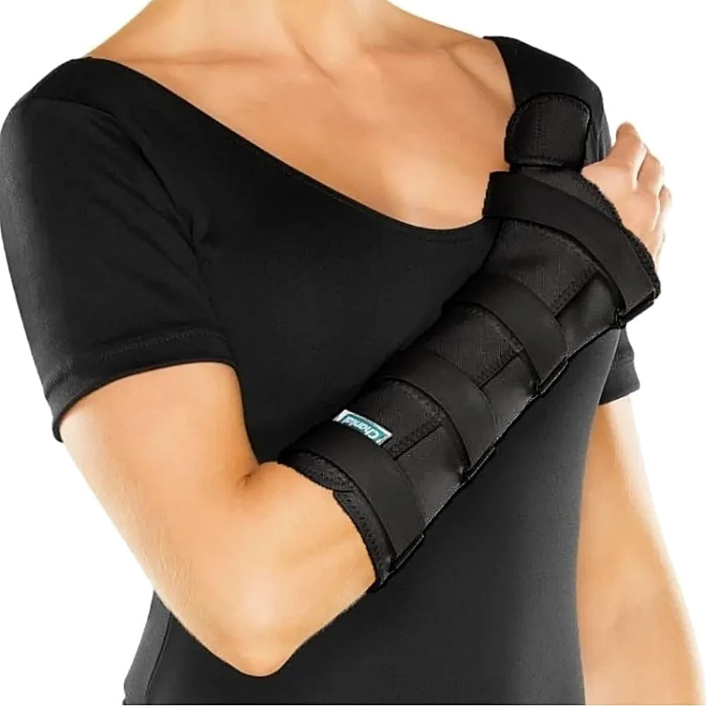 Tala para Punho e Polegar Longa Chantal - Esquerda - Preta - Tamanho PConfeccionada em lona dupla de algodão resistente e estrutura rígida em ABS anatômico, a Tala Chantal oferece suporte ideal a punho e polegar. Fecho de velcro reforçado e passantes em aço inox garantem fechamento seguro sem enferrujar. A bolsa externa acomoda a colher anatômica que mantém o polegar alinhado e livre para uso cotidiano. Lavável, hipoalergênica e de rápida secagem.Principais Benefícios✔ Estabilização completa: imobiliza punho e polegar para alívio rápido;✔ Conforto duradouro: interior acolchoado em algodão macio;✔ Ajuste seguro: velcro triplas tiras para posicionamento personalizado;✔ Durável e lavável: resiste a lavagens frequentes mantendo a forma;✔ Visual discreto: Preta neutro combina com qualquer look.Indicações de UsoFraturas estáveis de punho e polegarTendinite e tenossinovite do polegarSíndrome do túnel do carpoArtrose e artrite reumatoidePós-operatório e remoção de gessoPrevenção de recidivas em esportes e atividades diáriasCorreção de posturas viciosas e LER/DORTComo MedirMeça a circunferência do punho:TamanhoCircunferência (cm)PP14 - 17P17 - 18M19 - 20G21 - 22GG 23 - 24Especificações TécnicasReferência:C626Material:Algodão (lona dupla), ABS, aço inoxCor:PretaTamanho:PCircunferência do punho (cm):17 - 18Lado:EsquerdoRegistro ANVISA:81111610002As cores podem variar conforme o dispositivo. Consulte o Manual do Usuário para cuidados completos. Imagem meramente ilustrativa; descrição de responsabilidade do fabricante.Modelo: Padrão;Comprimento: Padrão;Tamanho: Padrão;Lado: Padrão;Cor: Padrão;