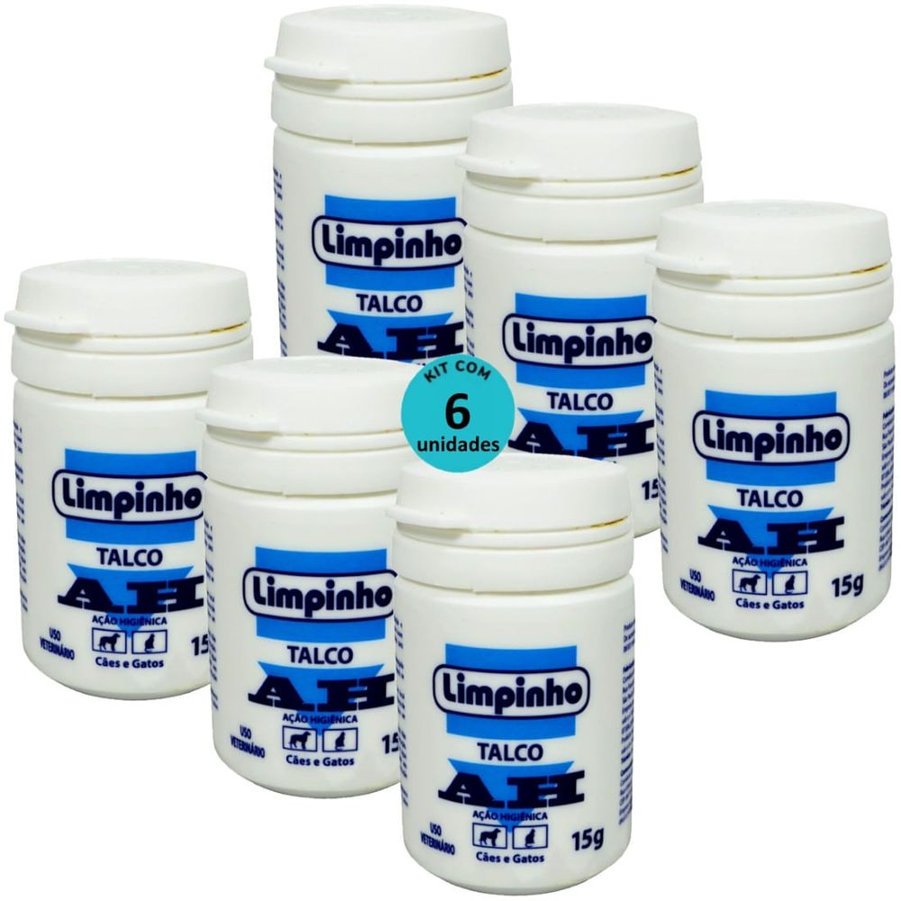 TALCO PÓ ANTISSÉPTICO AH 15G PARA CÃES E GATOS LIMPINHO KIT COM 6