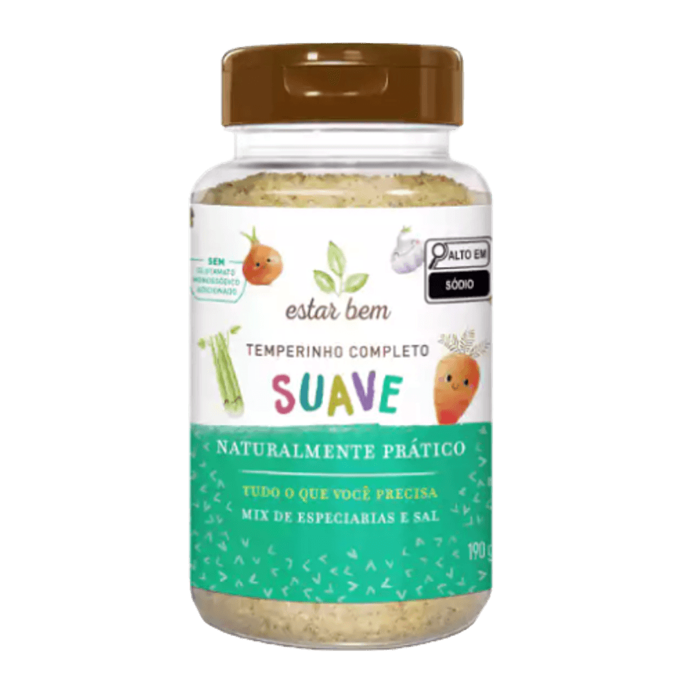 O Temperinho Completo Suave Estar Bem é 100% natural, sem nenhum tipo de conservante ou corante, não contém glúten e lactose.  Pensado especialmente para as mamães que buscam uma opção prática, saudável e cheia de sabor para temperar os alimentos de toda a família. O Temperinho Completo Suave Estar Bem pode ser utilizado na preparação de carnes, legumes, arroz ou com o que sua imaginação desejar. Ingredientes: Sal rosa do himalaia, cenoura em pó, farinha de aveia, cebola em pó, alho em pó, urucum em pó, cúrcuma em pó, cebolinha em pó, aipo verde em pó, espinafre em pó, casca de limão siciliano em pó, orégano em pó, alho poró em flocos, manjericão em pó, louro em pó, alecrim em pó, tomilho em pó, azeite de oliva e antiumectante dióxido de silício. NÃO CONTÉM GÇÚTEN.ALÉRGICOS: CONTÉM AVEIA. PODE CONTER SOJA. Sobre a marca: Para você estar bem com o mundo você precisa estar bem com você mesmo. Quando fundei a Estar Bem, meu objetivo era (e ainda é) o de oferecer às pessoas a oportunidade de se alimentar de forma consciente, e ao mesmo tempo prazeirosa.Descobrir, experimentar e levar até você uma nova forma de alimentação, equilibrada e capaz de unir sabor, consciência ambiental e qualidade de vida. Sobre a Boomi: A Boomi é  um mercado online com produtos saudáveis e sustentáveis, que fazem bem à saúde e ao planeta. São mais de 3.500 produtos de 150 pequenas marcas para você!Nascemos pequenos, mas com um propósito gigante: conectar pessoas a produtos acessíveis que tragam benefícios para a saúde, para o planeta e para a sociedade. Para isso, buscamos ofertar produtos de pequenos agricultores e pequenas empresas em um mundo cada vez mais veloz e que busca mais produtividade. Vamos sempre buscar levar o melhor para você!Nosso propósito é conectar alimentos saudáveis e produtos naturais e sustentáveis a pessoas preocupadas com a sua saúde e com a saúde do planeta. Com preço justo, comodidade e informações confiáveis.Curadoria: Nossos produtos são criteriosamente validados pela nossa curadoria de produtos saudáveis, que busca produtores e empresas que compartilham do nosso alto padrão de qualidade. Da enorme lista de ingredientes banidos à preocupação do bem estar animal, desde o primeiro dia seguimos fieis aos nossos valores, trabalhando com transparência e práticas sustentáveis. Vendemos apenas produtos que admiramos e que nos orgulha.