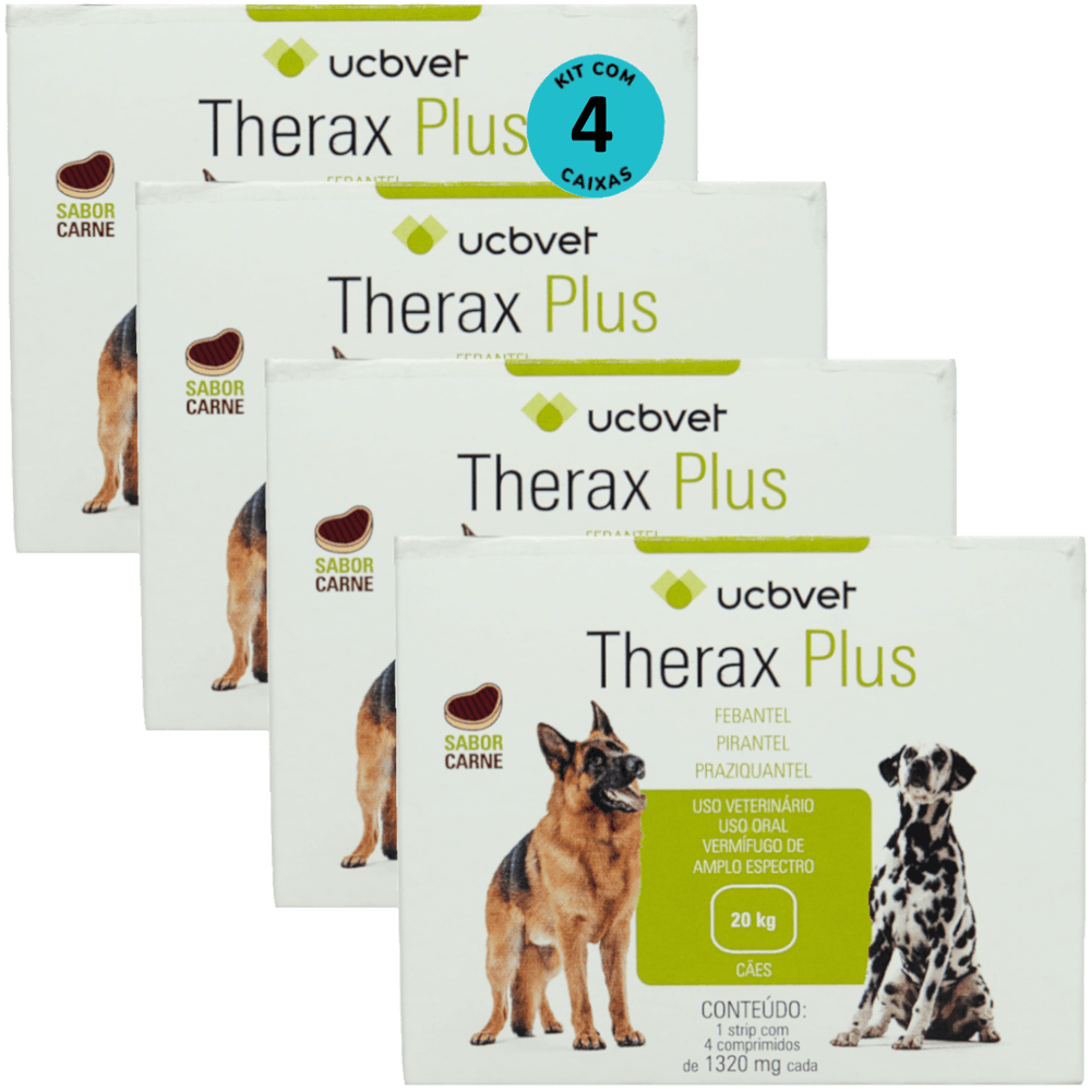 Therax Plus 1320mg Com 4 comprimidos Vermífugo UCBVET Kit Com 4