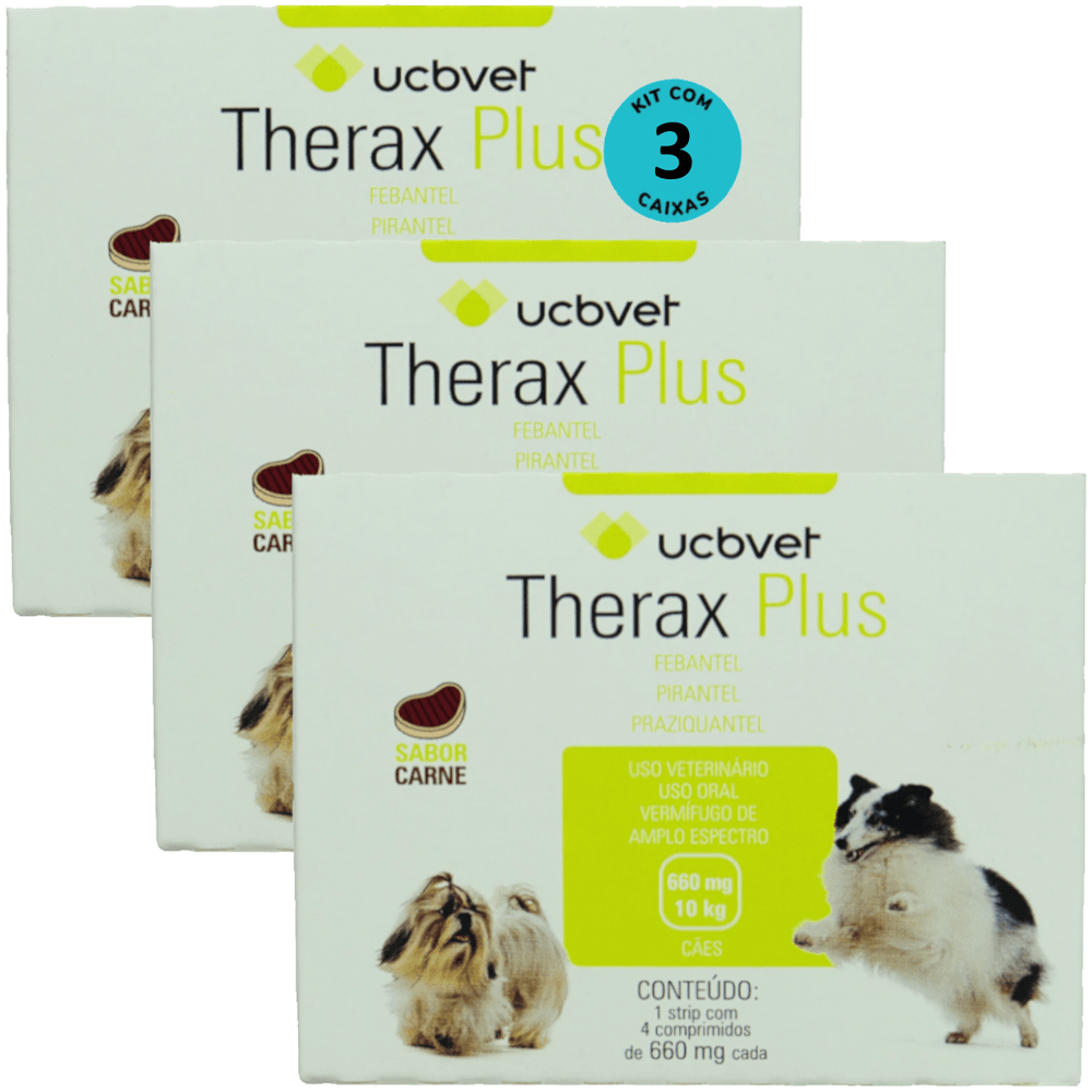 Therax Plus 660mg Com 4 comprimidos Vermífugo UCBVET Kit Com 3