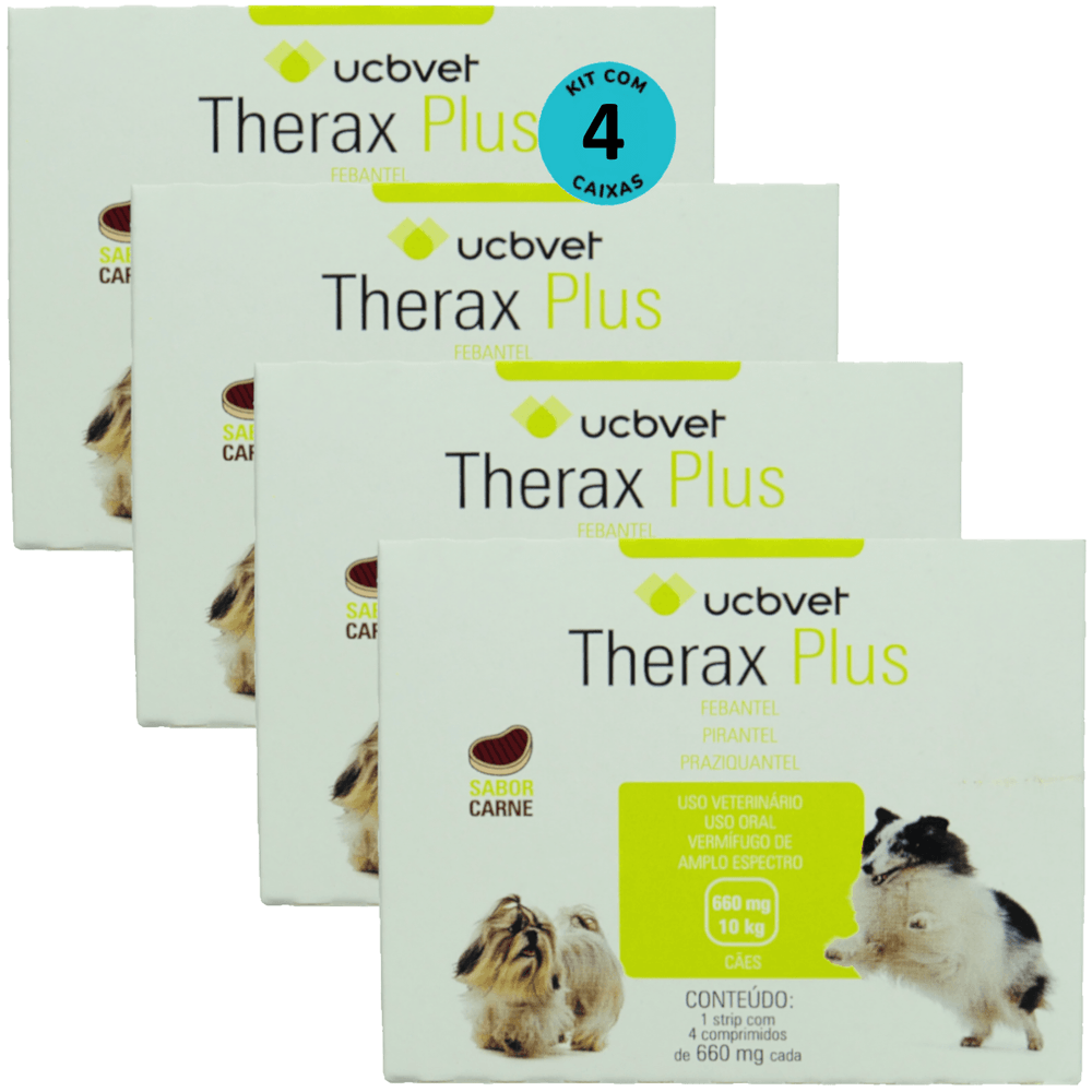 Therax Plus 660mg Com 4 comprimidos Vermífugo UCBVET Kit Com 4