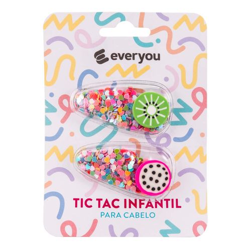 Os Tic Tacs Infantis da marca Ever You são acessórios para cabelo desenvolvidos para uso infantil, apresentados em design temático de frutas (kiwi e pitaya). Este conjunto contém 2 unidades e tem como função principal prender mechas de cabelo de forma segura e decorativa.