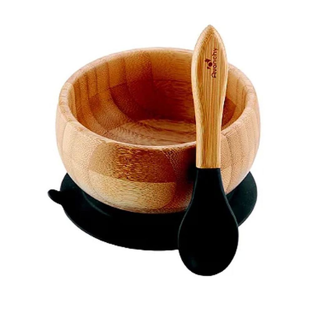 Tigela de Bambu e Colher de Silicone Preto - AVANCHY