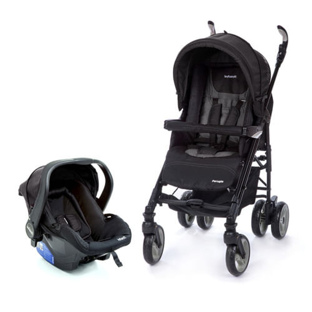 Bebê Conforto Terni Infanti com alça giratória: balanço, fixo, para transporte e para instalação no carro e no carrinho. Indicadores para confirmar a instalação no carro e no carrinho. Redutor de assento, capota retrátil e removível e cinto de segurança com 3 opções de ajuste de altura.