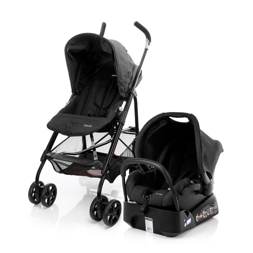 O Bebê Conforto One-Safe Plus que acompanha o carrinho possui a proteção exclusiva SafeSide® contra impactos laterais, almofada redutora e apoio de cabeça removíveis, cinto de 3 pontos com ajuste de altura e capota removível. Tecido lavável à mão. Acompanha base para instalação no veículo.