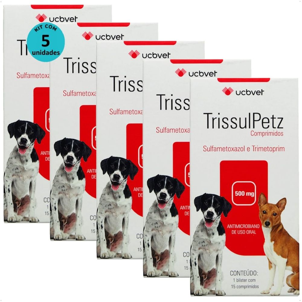 TRISSULPETZ 500MG COM 15 COMPRIMIDOS PARA CÃES UCBVET KIT COM 5
