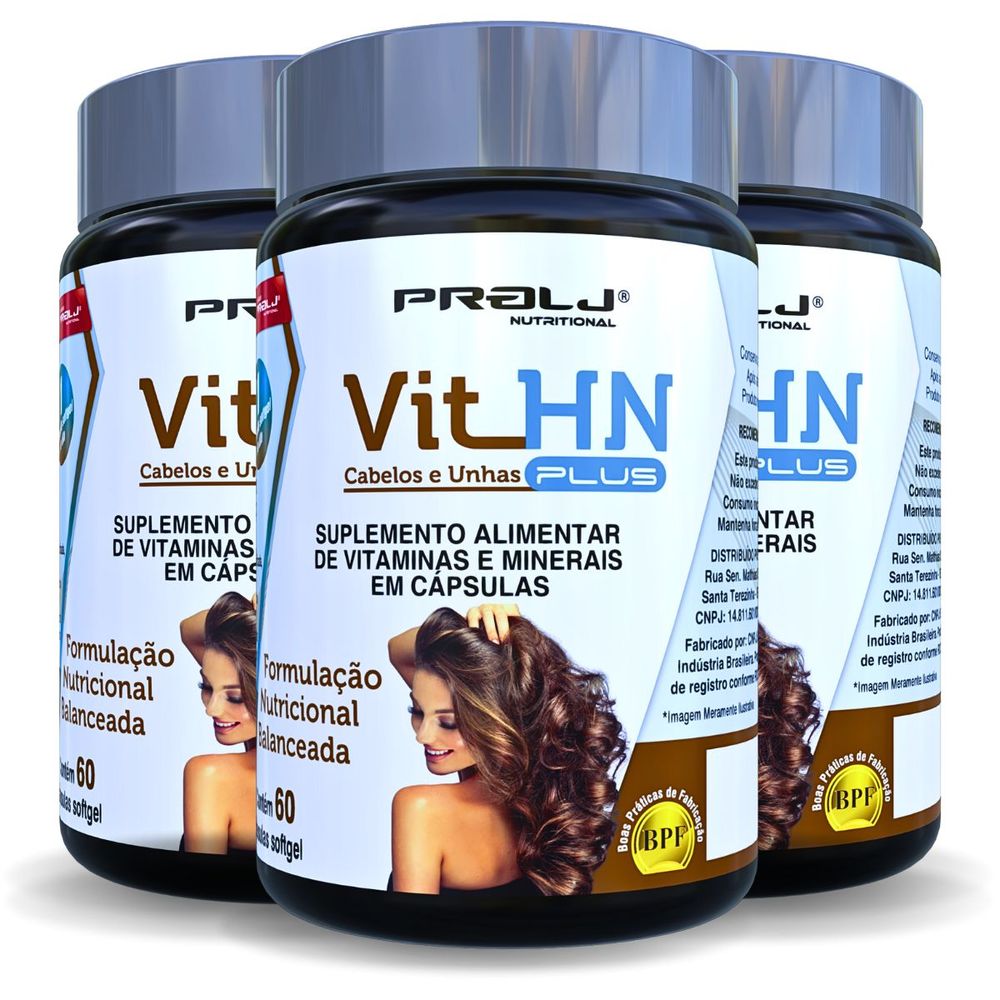 VIT HN PLUS 180 CÁPS GEL SAÚDE CABELOS UNHAS PELE KIT 3