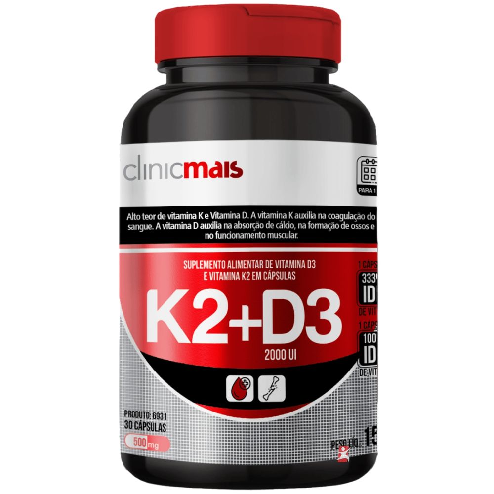 VITAMINA K2 MENAQUINONA MK7 120MCG + D3 50MCG 30 CÁPSULAS - CLINICMAIS
