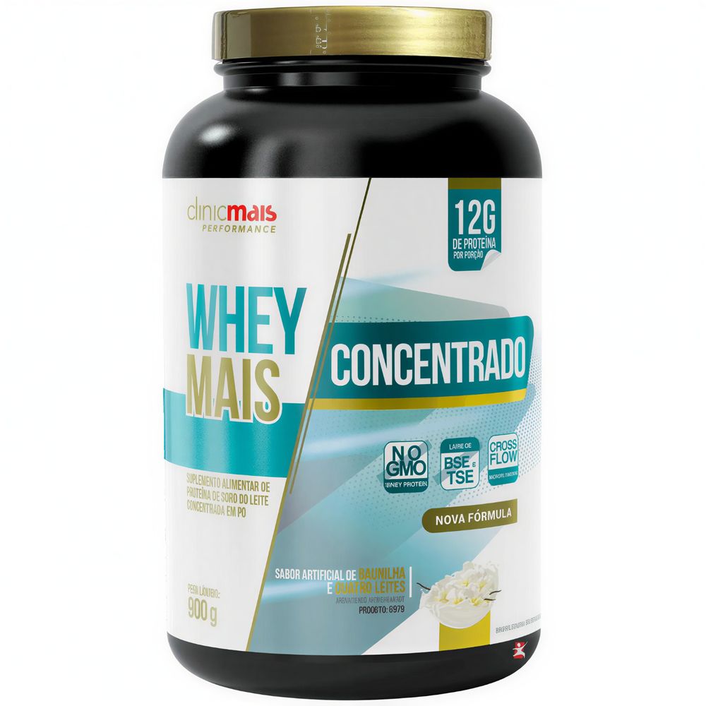 WHEY MAIS CONCENTRADO 12G POR PORÇÃO - QUATRO LEITES E BAUNILHA 900G - CLINICMAIS