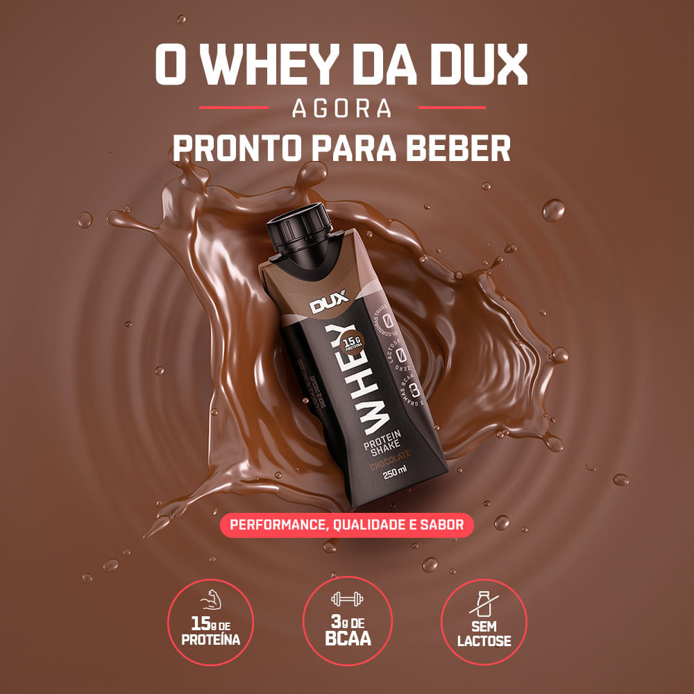 ;product-group: group-wps;Descrição Inicial: {"descricao-inicial":{"title":"Shake proteico pronto para beber.","description":"Muito sabor, alta qualidade nutricional e praticidade para os seus lanches, onde e quando quiser.","color":"#fff","id":1}};Resumo: {"resumo":[{"title":"O que é","description":"O nosso Whey Protein Shake tem uma fórmula inovadora desenvolvida para todos que buscam um estilo de vida ativo e saudável. Com 15 g de proteína, 3 g de BCAA e zero lactose, nossa bebida combina qualidade, praticidade e sabor. Além disso, suas embalagens 100% recicláveis reforçam nosso compromisso com a sustentabilidade.","id":1},{"title":"Ideal Para","description":"Ideal para qualquer pessoa que deseja manter um estilo de vida saudável. Uma solução prática e saborosa para quem deseja aumentar sua ingestão de proteínas com muito sabor.","id":2},{"title":"Por trás do rótulo","description":"A proteína é um macronutriente essencial para a síntese e reparação do tecido muscular. Com baixas quantidades de carboidratos e gorduras e rico em proteínas de alto valor biológico, BCAAs e cálcio, nossos Whey Portein shakes são excelentes opções para lanches deliciosos e práticos entre as refeições principais.","id":3}]};Ícones: {"icones":[{"title":"15 g Proteína","image":"https://duxnutrition.vtexassets.com/assets/vtex.file-manager-graphql/images/b5ddac0b-2d63-43af-888c-a3a50763a37c___3e228787e51a411976e204dbdef1e384.png","id":1},{"title":"3g BCAA","image":"https://duxnutrition.vtexassets.com/assets/vtex.file-manager-graphql/images/0315a4e1-5332-4b1d-ba16-516e02798d55___9536a385cc2a019b772c4899aef7b515.png","id":2},{"title":"Sem lactose","image":"https://duxnutrition.vtexassets.com/assets/vtex.file-manager-graphql/images/47e5c1cc-2396-4b2e-8a0e-095584f5059c___108ba6fcb11c9db7219147e4be4c883d.png","id":3},{"title":"Com cafeína","image":"https://duxnutrition.vtexassets.com/assets/vtex.file-manager-graphql/images/f7e68b0a-02be-420d-bca6-de303afe4904___192c2fd5059f7f8886f597d41de5e920.png","id":4}]};Texto Longo: {"texto-longo":{"title":"Sugestões de Uso","text":"O Whey Protein Shake é um suplemento alimentar líquido pronto para beber, ideal para ser consumido a qualquer momento do dia, seja como um lanche prático, no pós-treino para auxiliar na recuperação muscular ou entre as refeições para garantir uma ingestão adequada de proteínas.","id":1}};Inf Nutricional: {"tabela-nutricional":{"background":"https://duxnutrition.vtexassets.com/assets/vtex.file-manager-graphql/images/6de8788e-68a6-43d1-aa1b-2f985ef995c5___c101317ccdbc05f1dedf715eca96fffe.jpg","backgroundMobile":"https://duxnutrition.vtexassets.com/assets/vtex.file-manager-graphql/images/6de8788e-68a6-43d1-aa1b-2f985ef995c5___c101317ccdbc05f1dedf715eca96fffe.jpg","items":[{"flavorReplaced":"coco","flavor":"Coco","id":1,"text":"Porção: 250 ml (1 unidade)\r\n250 ml","items":[{"id":1,"title":"","text":"250 ml","value":"% VD*"},{"id":2,"title":"Valor energético (kcal)","text":"113","value":"0.06"},{"id":3,"title":"Carboidratos (g)","text":"11","value":"0.04"},{"id":4,"title":"Açúcares totais (g)","text":"11","value":""},{"id":5,"title":"Açúcares adicionados (g)","text":"0","value":"0"},{"id":6,"title":"Lactose (g)","text":"0","value":""},{"id":7,"title":"Proteínas (g)","text":"15","value":"0.3"},{"id":8,"title":"Gorduras totais (g)","text":"0.9","value":"0.01"},{"id":9,"title":"Gorduras saturadas (g)","text":"0.6","value":"0.03"},{"id":10,"title":"Fibras alimentares (g)","text":"1.3","value":"0.05"},{"id":11,"title":"Sódio (mg)","text":"287","value":"0.14"},{"id":12,"title":"Cálcio (mg)","text":"408","value":"0.41"}]},{"flavorReplaced":"café com leite","flavor":"Café com Leite","id":2,"text":"Porção: 250 ml (1 unidade)\r\n250 ml","items":[{"id":1,"title":"","text":"250 ml","value":"% VD*"},{"id":2,"title":"Valor energético (kcal)","text":"116","value":"0.06"},{"id":3,"title":"Carboidratos (g)","text":"12","value":"0.04"},{"id":4,"title":"Açúcares totais (g)","text":"11","value":""},{"id":5,"title":"Açúcares adicionados (g)","text":"0","value":"0"},{"id":6,"title":"Lactose (g)","text":"0","value":""},{"id":7,"title":"Proteínas (g)","text":"15","value":"0.3"},{"id":8,"title":"Gorduras totais (g)","text":"0.9","value":"0.01"},{"id":9,"title":"Gorduras saturadas (g)","text":"0.6","value":"0.03"},{"id":10,"title":"Fibras alimentares (g)","text":"1.5","value":"0.06"},{"id":11,"title":"Sódio (mg)","text":"295","value":"0.15"},{"id":12,"title":"Cálcio (mg)","text":"418","value":"0.42"},{"id":13,"title":"Cafeína (mg)","text":"100","value":""}]},{"flavorReplaced":"chocolate branco","flavor":"Chocolate Branco","id":3,"text":"Porção: 250 ml (1 unidade)\r\n250 ml","items":[{"id":1,"title":"","text":"250 ml","value":"% VD*"},{"id":2,"title":"Valor energético (kcal)","text":"114","value":"0.06"},{"id":3,"title":"Carboidratos (g)","text":"11","value":"0.04"},{"id":4,"title":"Açúcares totais (g)","text":"11","value":""},{"id":5,"title":"Açúcares adicionados (g)","text":"0","value":"0"},{"id":6,"title":"Lactose (g)","text":"0","value":""},{"id":7,"title":"Proteínas (g)","text":"15","value":"0.3"},{"id":8,"title":"Gorduras totais (g)","text":"1.1","value":"0.02"},{"id":9,"title":"Gorduras saturadas (g)","text":"0.7","value":"0.04"},{"id":10,"title":"Fibras alimentares (g)","text":"1.3","value":"0.05"},{"id":11,"title":"Sódio (mg)","text":"279","value":"0.14"},{"id":12,"title":"Cálcio (mg)","text":"393","value":"0.39"}]},{"flavorReplaced":"doce de leite","flavor":"Doce de Leite","id":4,"text":"Porção: 250 ml (1 unidade)\r\n250 ml","items":[{"id":1,"title":"","text":"250 ml","value":"% VD*"},{"id":2,"title":"Valor energético (kcal)","text":"116","value":"0.06"},{"id":3,"title":"Carboidratos (g)","text":"12","value":"0.04"},{"id":4,"title":"Açúcares totais (g)","text":"11","value":""},{"id":5,"title":"Açúcares adicionados (g)","text":"0","value":"0"},{"id":6,"title":"Lactose (g)","text":"0","val